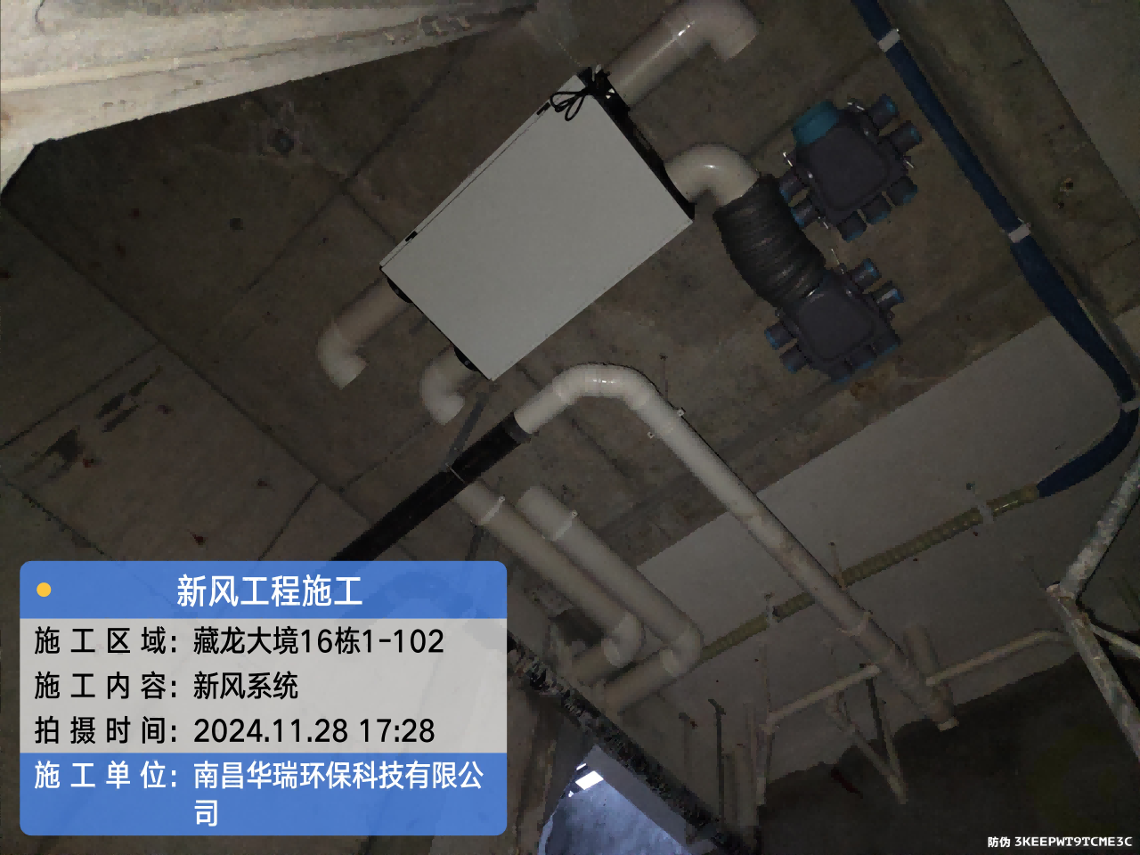 項(xiàng)目名稱:新風(fēng)安裝藏龍大境施工日期:2024.11.28