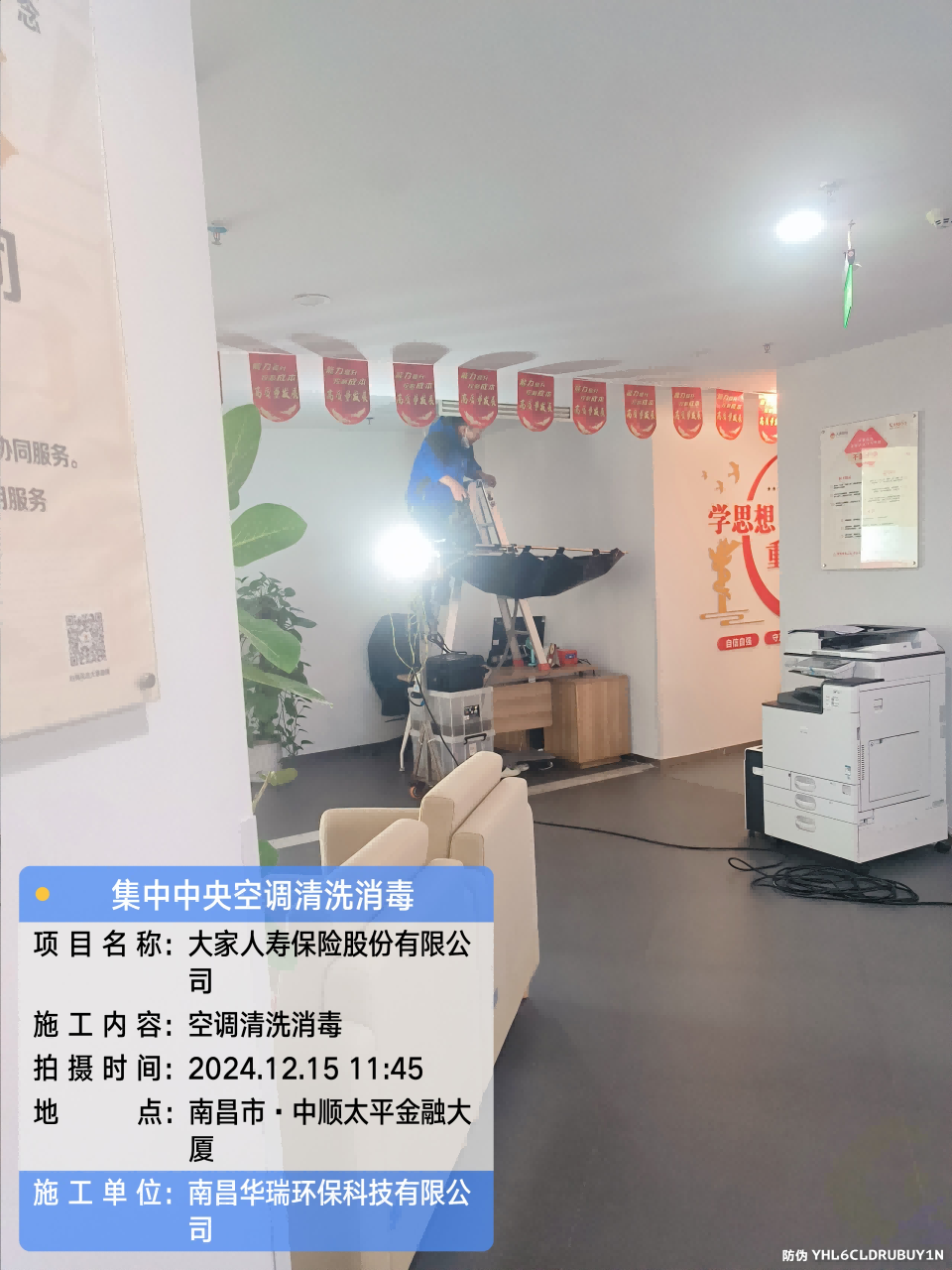 項(xiàng)目名稱:集中中央空調(diào)清洗消毒大家保險(xiǎn)施工日期:2024.12.15