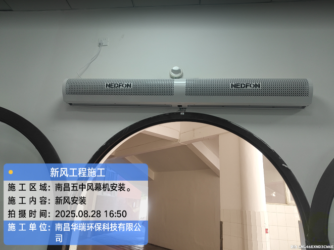 項(xiàng)目名稱:南昌五中風(fēng)幕機(jī)安裝施工時(shí)間:2025年8月28日